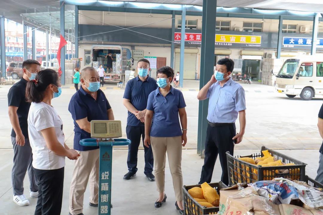 黃梅芳一行實(shí)地察看了綠元農(nóng)副產(chǎn)品市場,檢查了市場進(jìn)出卡口、體溫檢測、掃碼、進(jìn)出車輛消毒及內(nèi)部管控等疫情防控措施,向商戶詳細(xì)了解了菜品菜價(jià)、貨物渠道,著重對經(jīng)常出入省外中高風(fēng)險(xiǎn)區(qū)域商戶人員進(jìn)行了摸底排查。